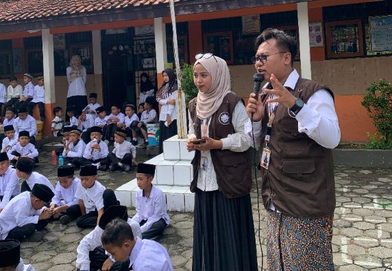 Mereka membawakan materi sejarah Hari Santri Nasional dengan gaya interaktif dan komunikatif, membuat siswa tetap fokus dan bersemangat.
