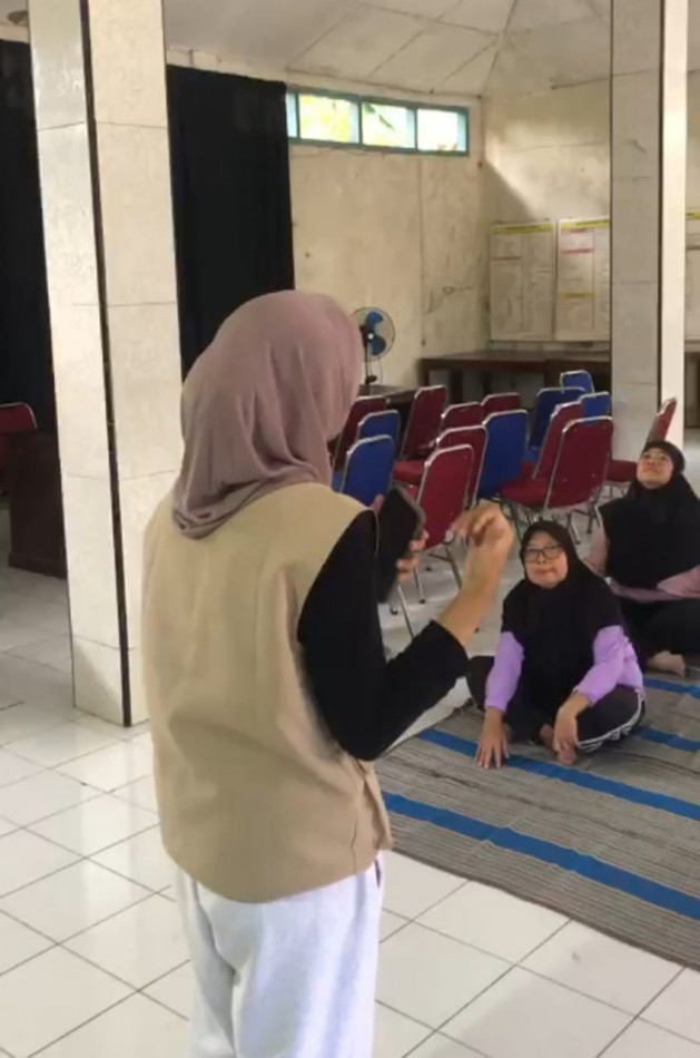 Dalam pelaksanaannya, ibu-ibu lansia mengikuti arahan pernapasan dan gerakan relaksasi otot secara bertahap sehingga dapat lebih fokus dan rileks. Latihan pernapasan dilakukan dengan hitungan 1–3, yaitu menarik napas secara perlahan, menahannya sejenak, kemudian menghembuskannya melalui mulut secara perlahan. Kegiatan ini berlangsung selama kurang lebih 7–10 menit.